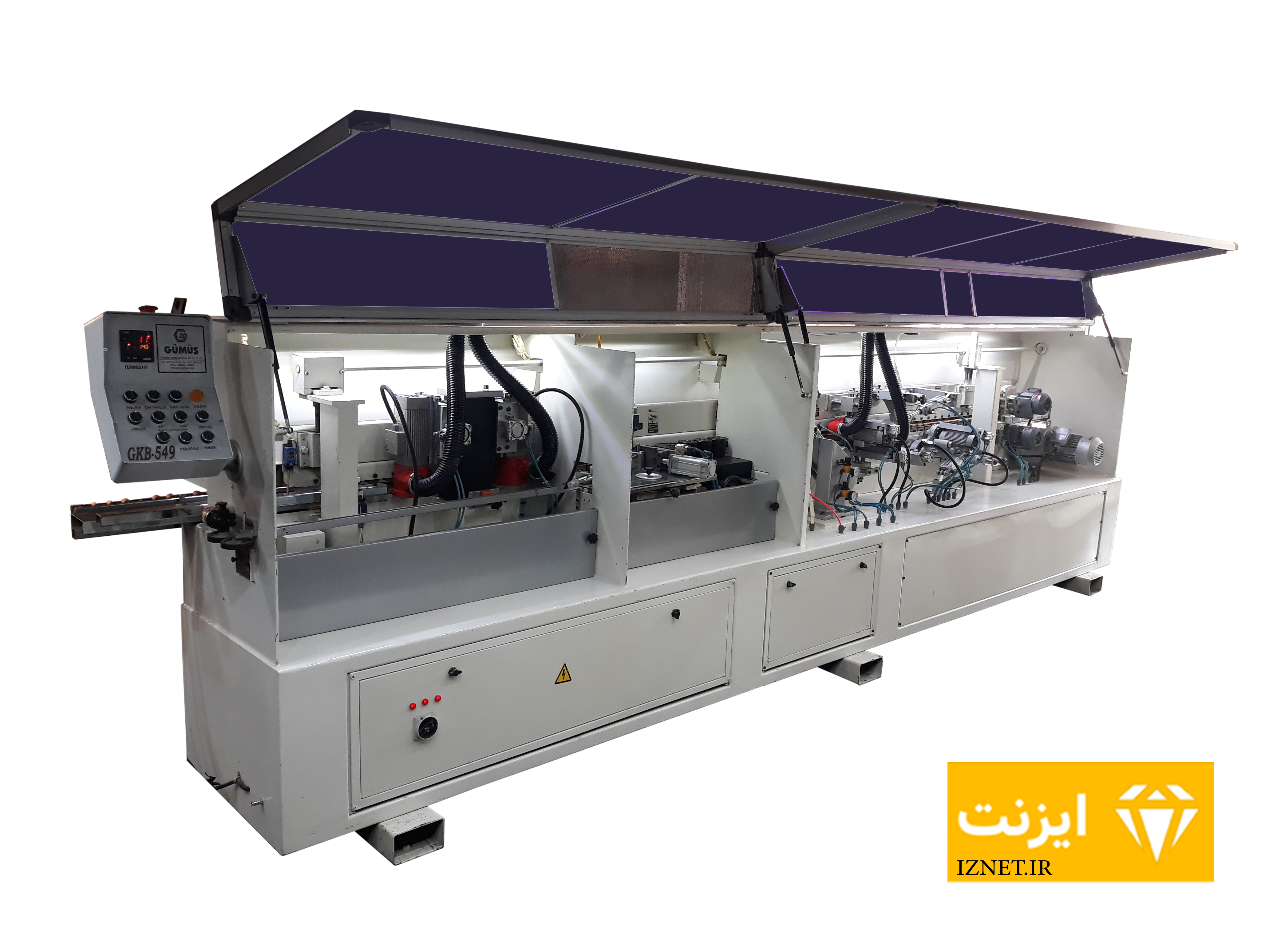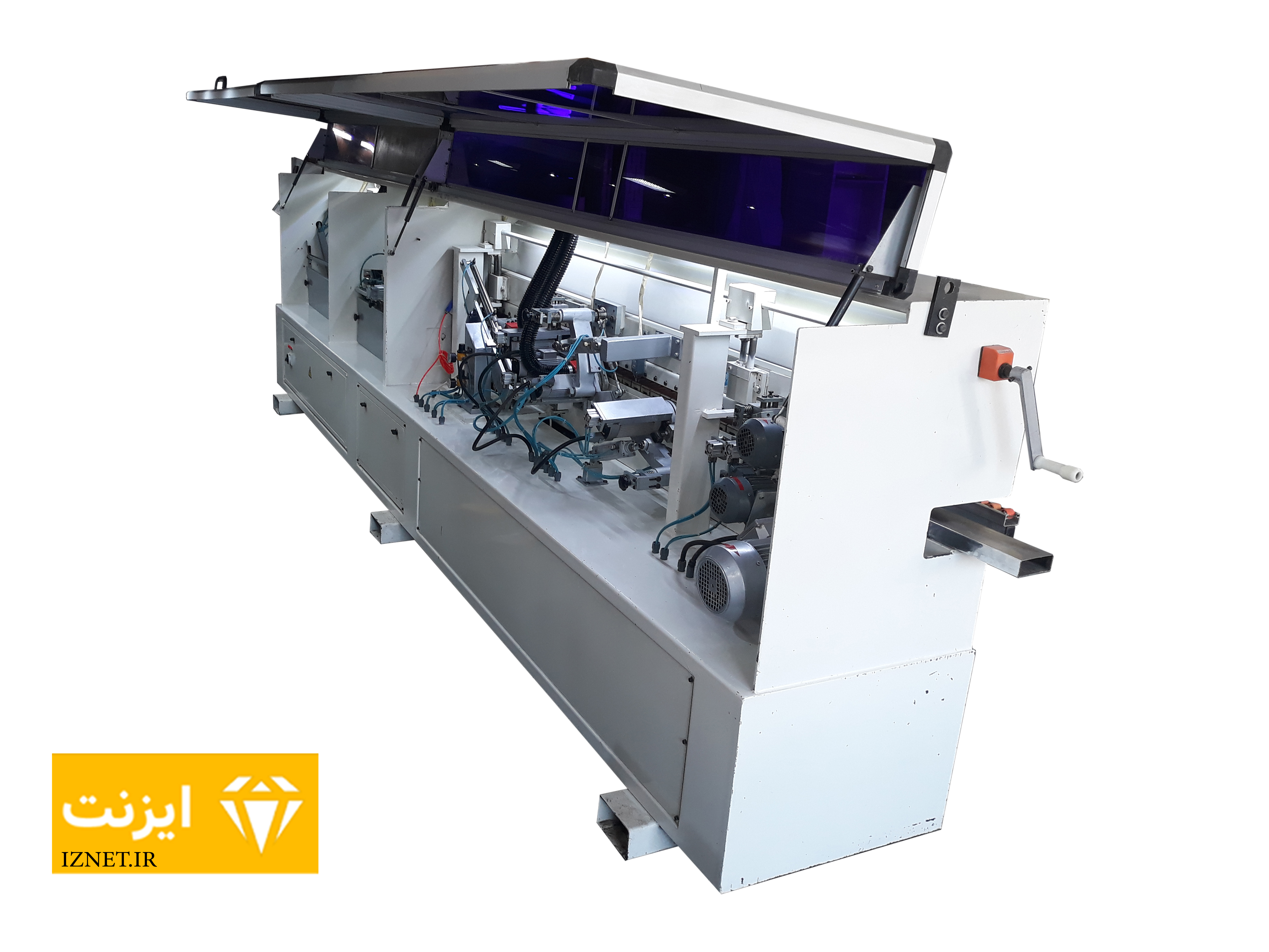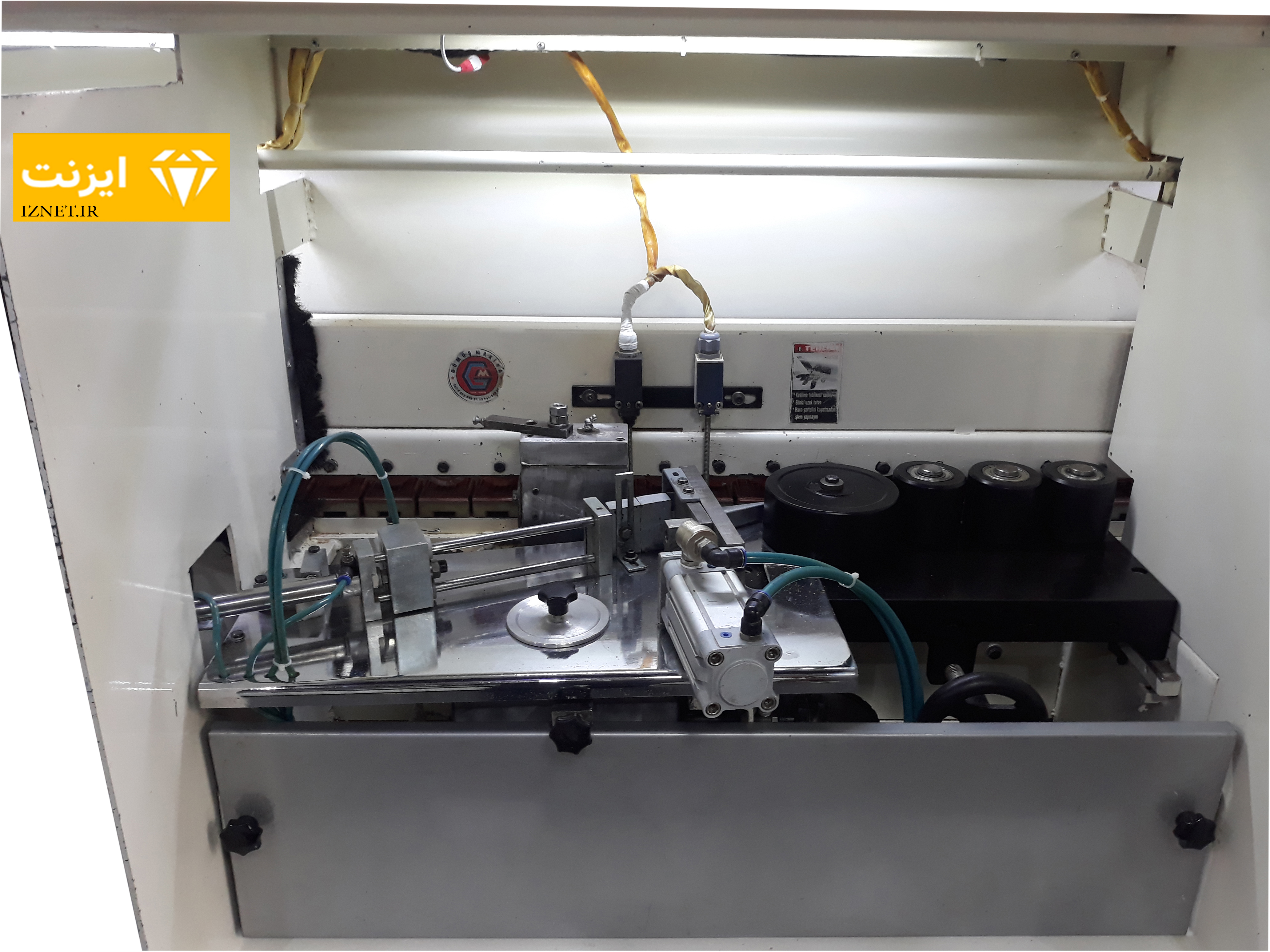 این مجموعه از چهار بخش اصلی جلو برنده نوار، چسب زن، گیوتین و غلطک های فشار تشکیل می شود. جلو برنده نوار از پایین توسط کانوایر و از بالا توسط غلطک هرزگرد، نوار PVC را به جلو میبرد. در بخش چسب زن سطح نر کار به چسب آغشته شده و توسط گیوتین سر و ته نوار بریده میشود و توسط غلطک های فشار، نوار به سطح لبه میچسبد.