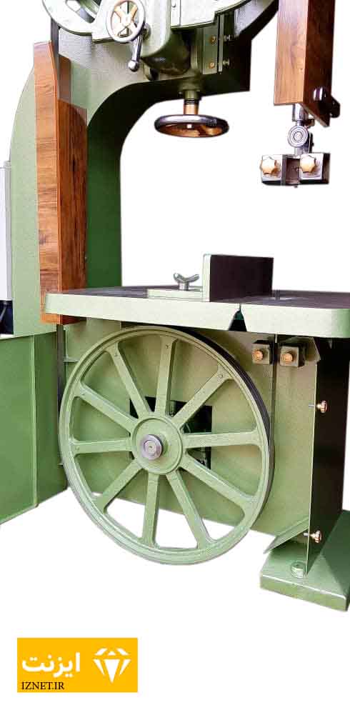 در قسمت زیر فلکه بالایی ،قطعه ای وجود دارد که به ان به اصطلاح <<مهار اره >>میگویند ،وظیفه این قطعه که ازیک میله که به یک بلبرینگ متصل ودو عدد جای چوب که اره را مهار کرده تشکیل شده که مانع از چپ راست شدن اره و خارج شدن اره از فلکه بالا پایین میشود