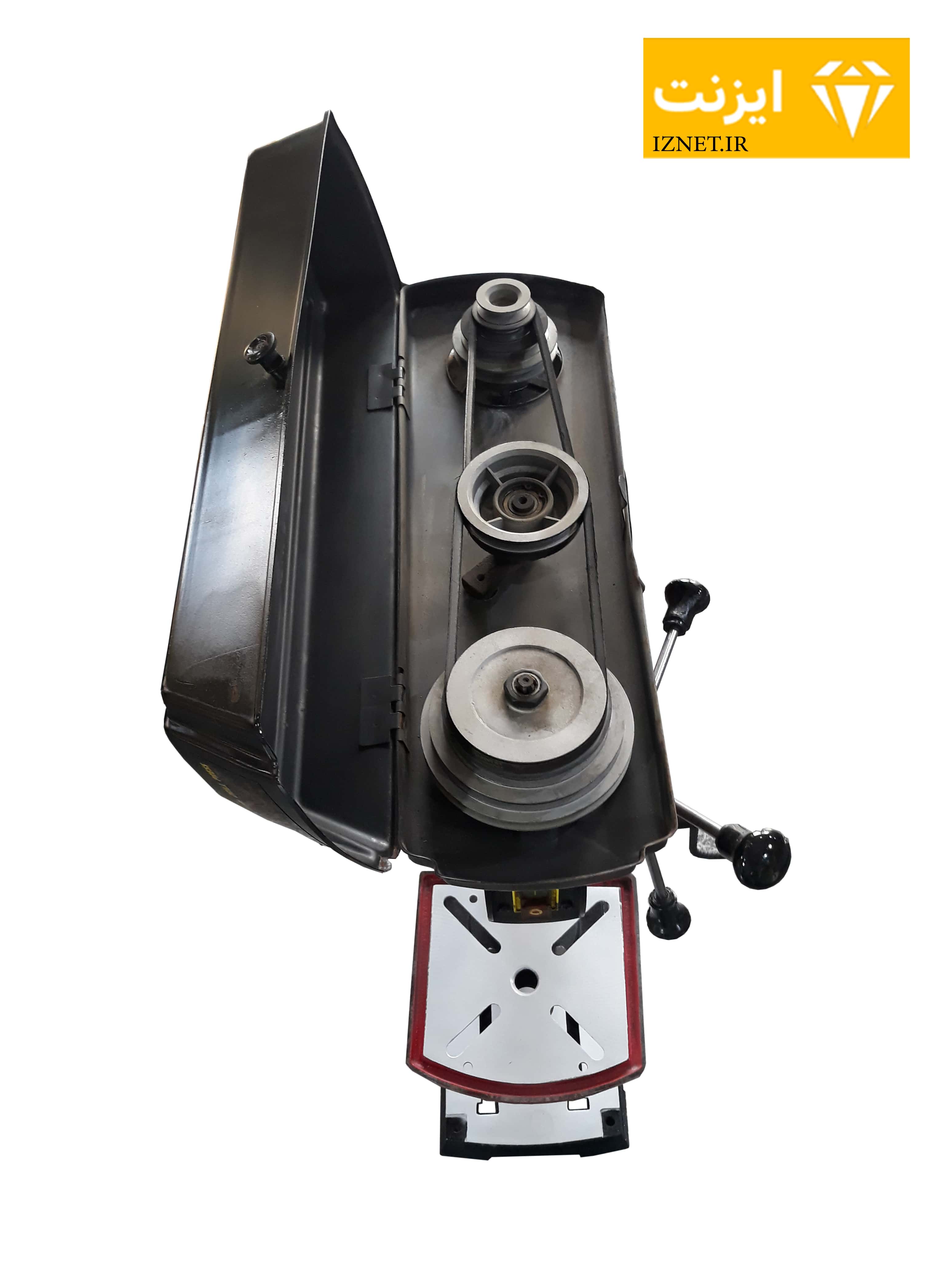 فولی : در قسمت بالای دستگاه دو عدد فولی قرار گرفته که به وسیله تسمه به هم متصل شده اند ،با جابجایی تسمه بر روی فول ها دور دستگاه تغییر میکند