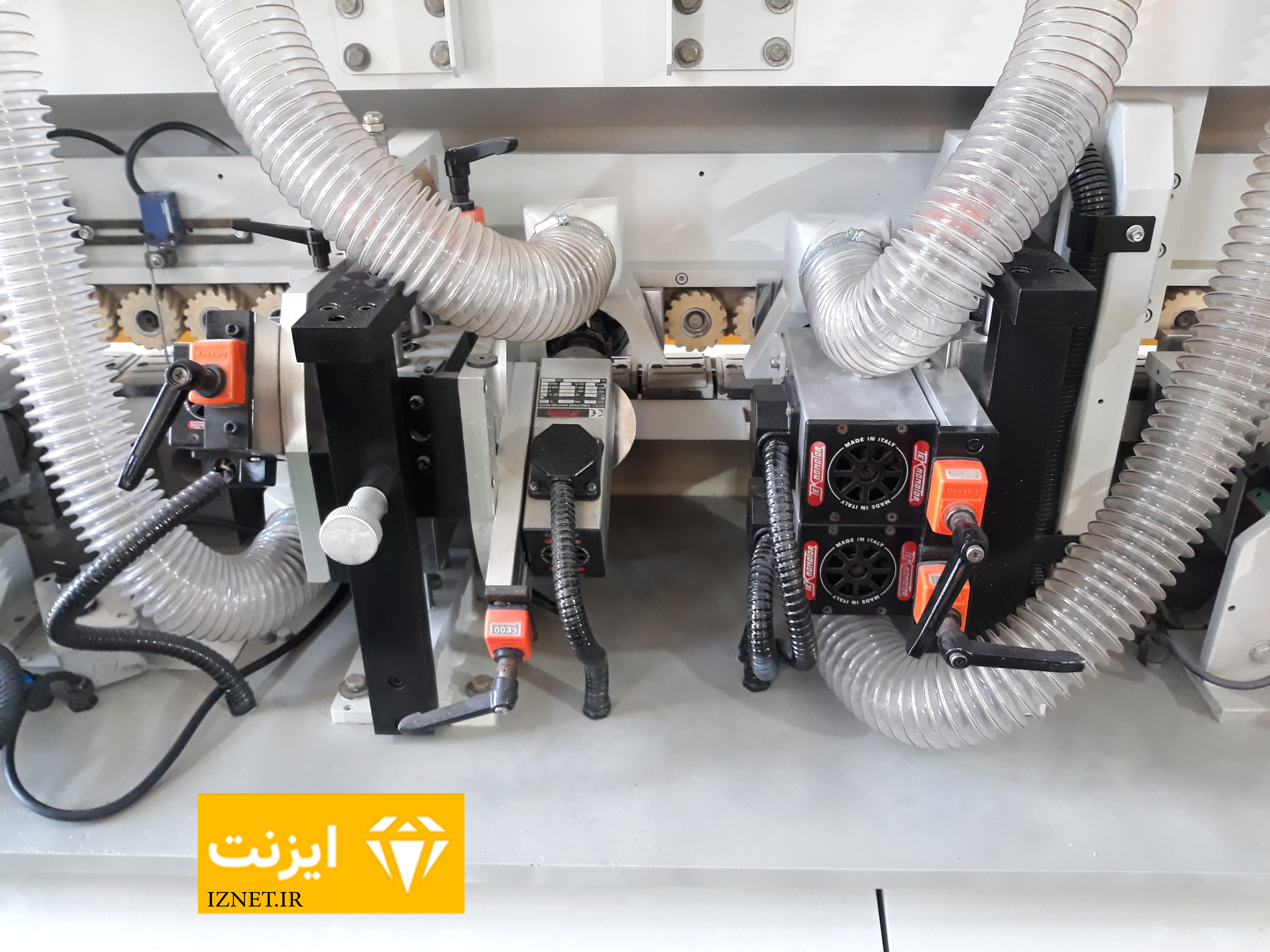 ایستگاه فرز بالا و پایین اضافات نوار را از بالا و پایین را پرداخت کرده و لبه نوار PVC را هم سطح کار می کند.
