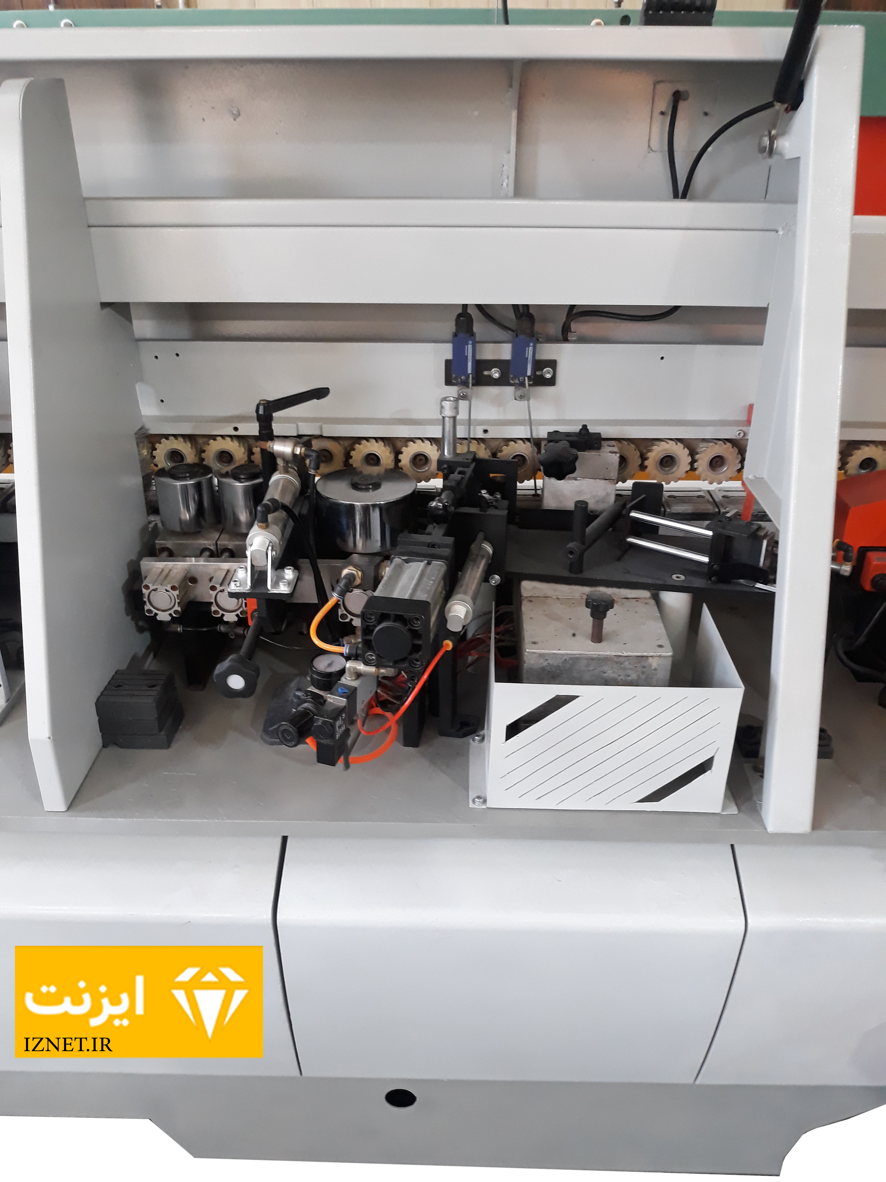 این مجموعه از چهار بخش اصلی جلو برنده نوار، چسب زن، گیوتین و غلطک های فشار تشکیل می شود. جلو برنده نوار از پایین توسط کانوایر و از بالا توسط غلطک هرزگرد، نوار PVC را به جلو میبرد. در بخش چسب زن سطح نر کار به چسب آغشته شده و توسط گیوتین سر و ته نوار بریده میشود و توسط غلطک های فشار، نوار به سطح لبه میچسبد.