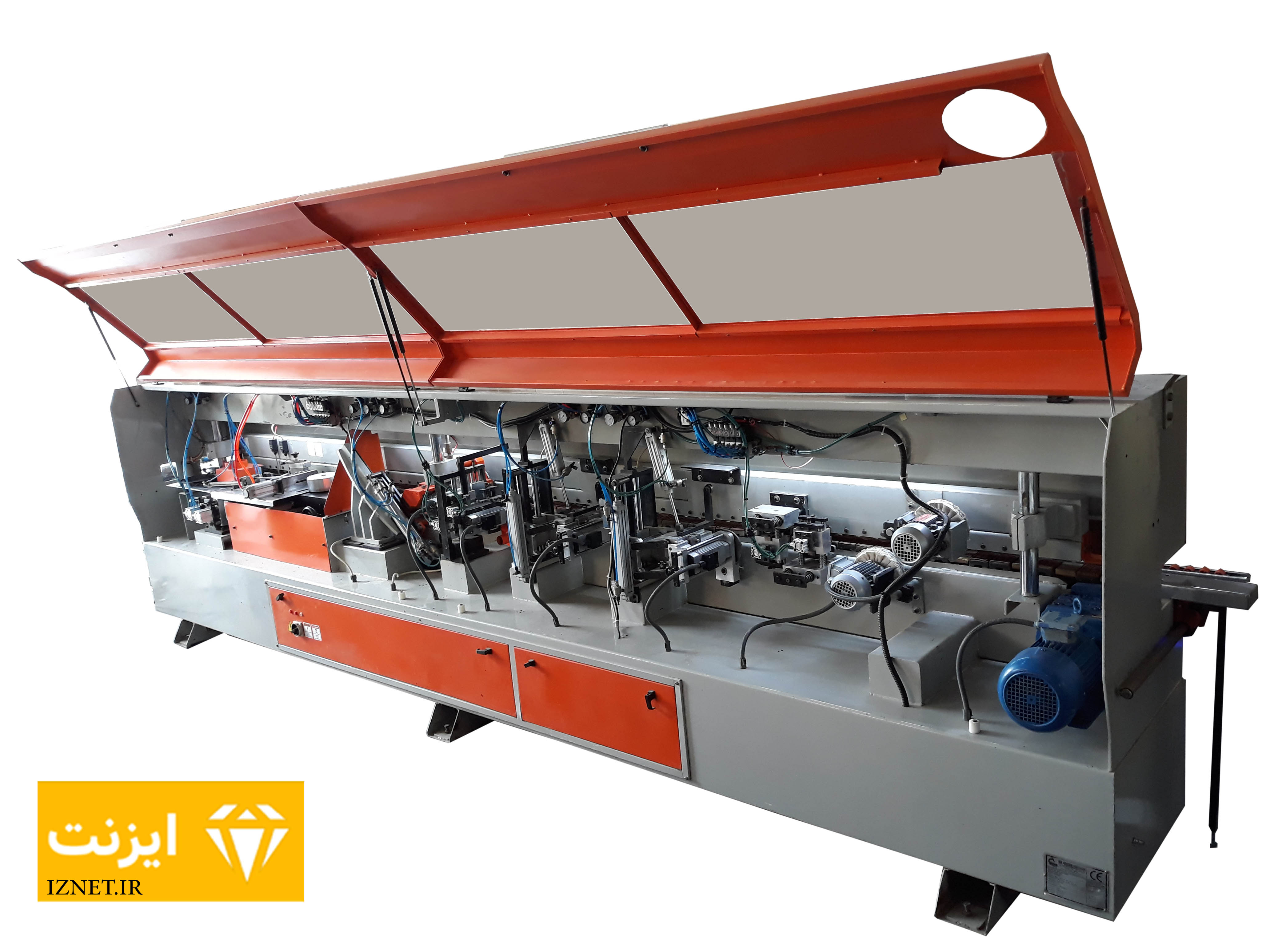 این مجموعه از چهار بخش اصلی جلو برنده نوار، چسب زن، گیوتین و غلطک های فشار تشکیل می شود. جلو برنده نوار از پایین توسط کانوایر و از بالا توسط غلطک هرزگرد، نوار PVC را به جلو میبرد. در بخش چسب زن سطح نر کار به چسب آغشته شده و توسط گیوتین سر و ته نوار بریده میشود و توسط غلطک های فشار، نوار به سطح لبه میچسبد.